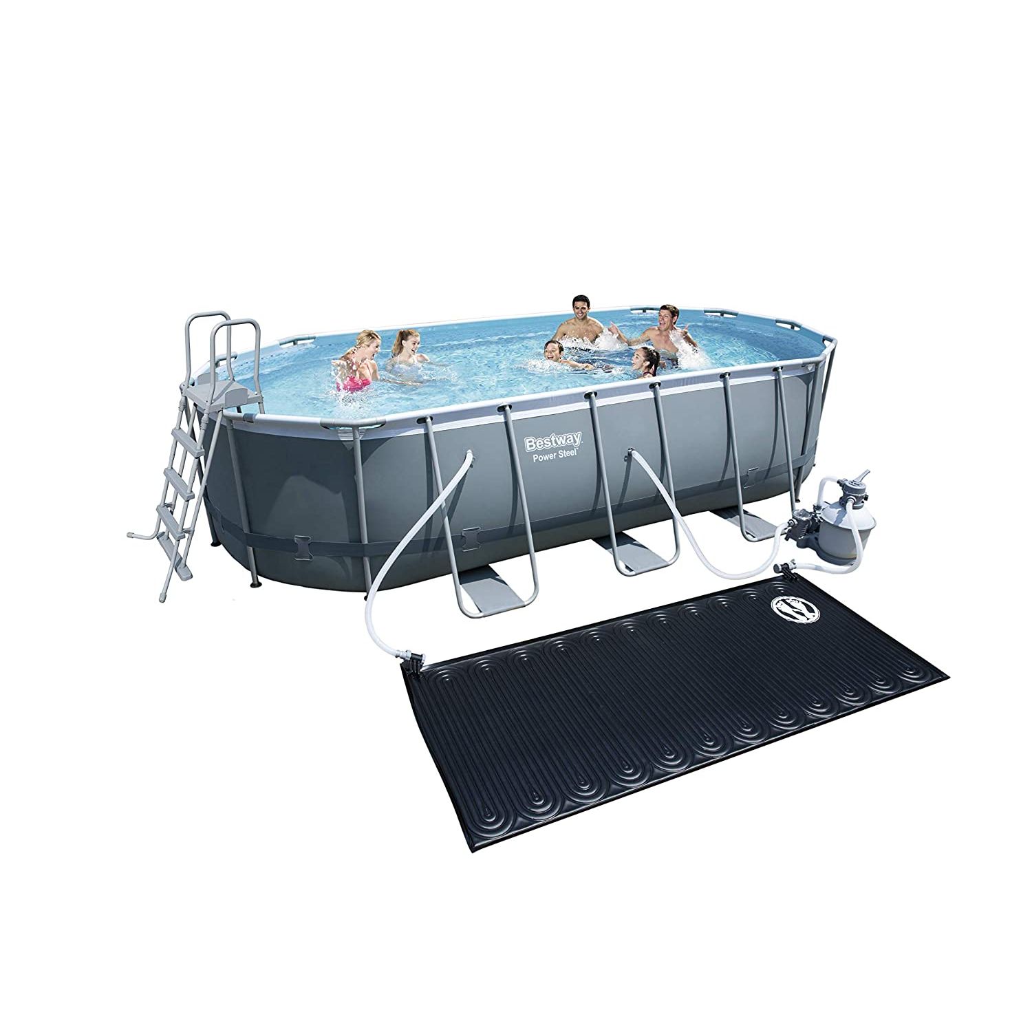 La Piscine hors sol Power Steel™ L.549cmxl.274cmxh.122cm de forme ovale est facile à monter et à entretenir. Son armature en acier est résistante à la rouille. Elle est équipée d'une cartouche de filtration à sable, d'1 pompe de filtration, d'1 échelle de sécurité, d'1 bâche 4 saisons pour pro