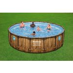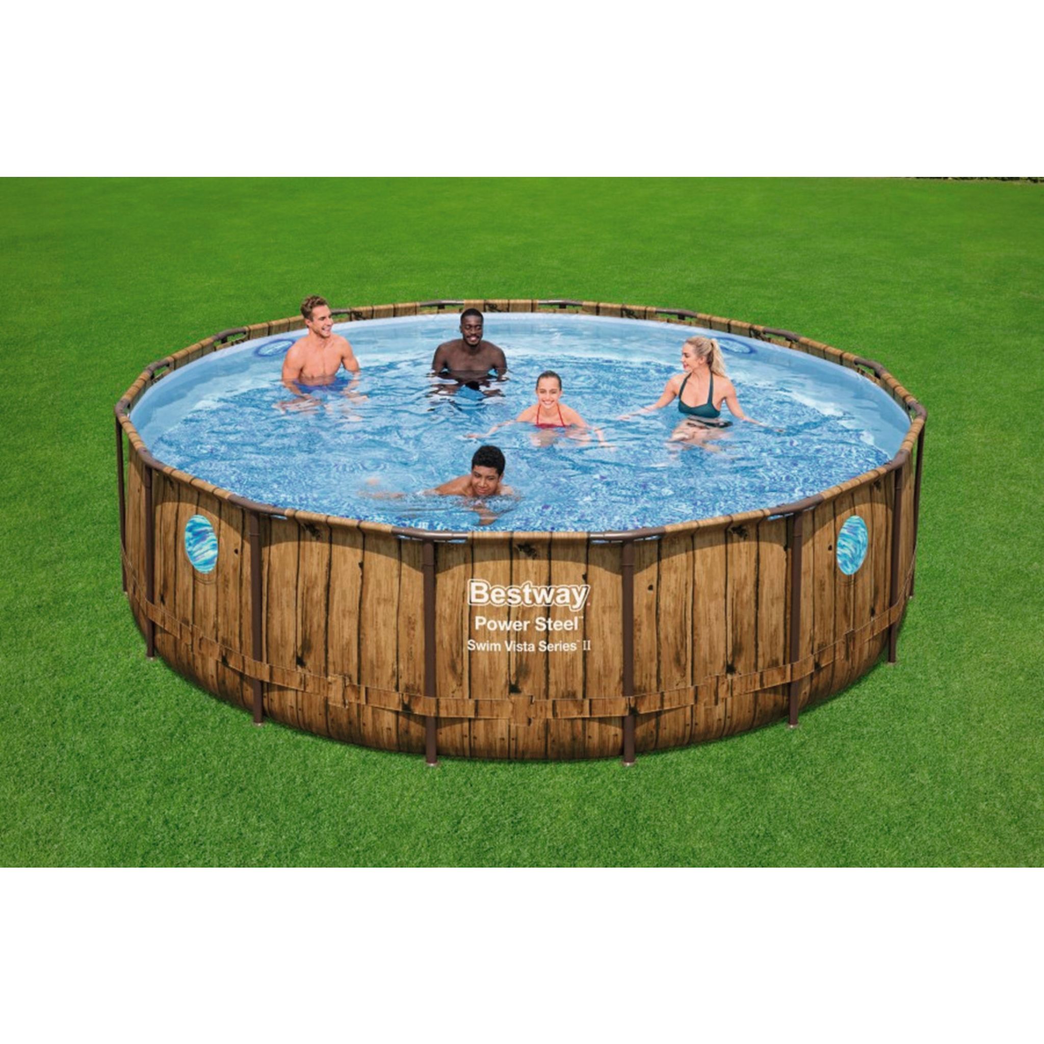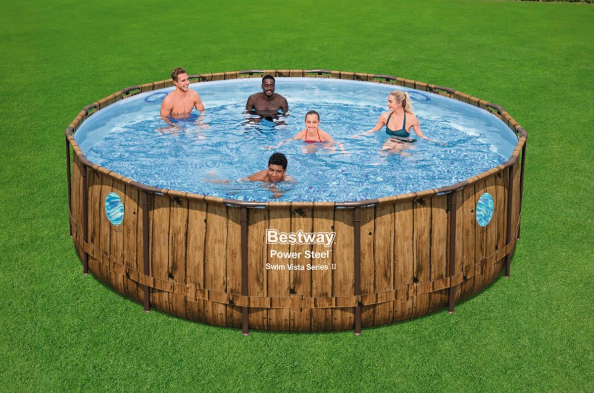 Découvrez la piscine tubulaire ronde décor aspect bois avec hublots 488x122cm Power Steel SwimVista, une innovation dont vous ne pourrez plus vous passer ! Du fun en perspective !