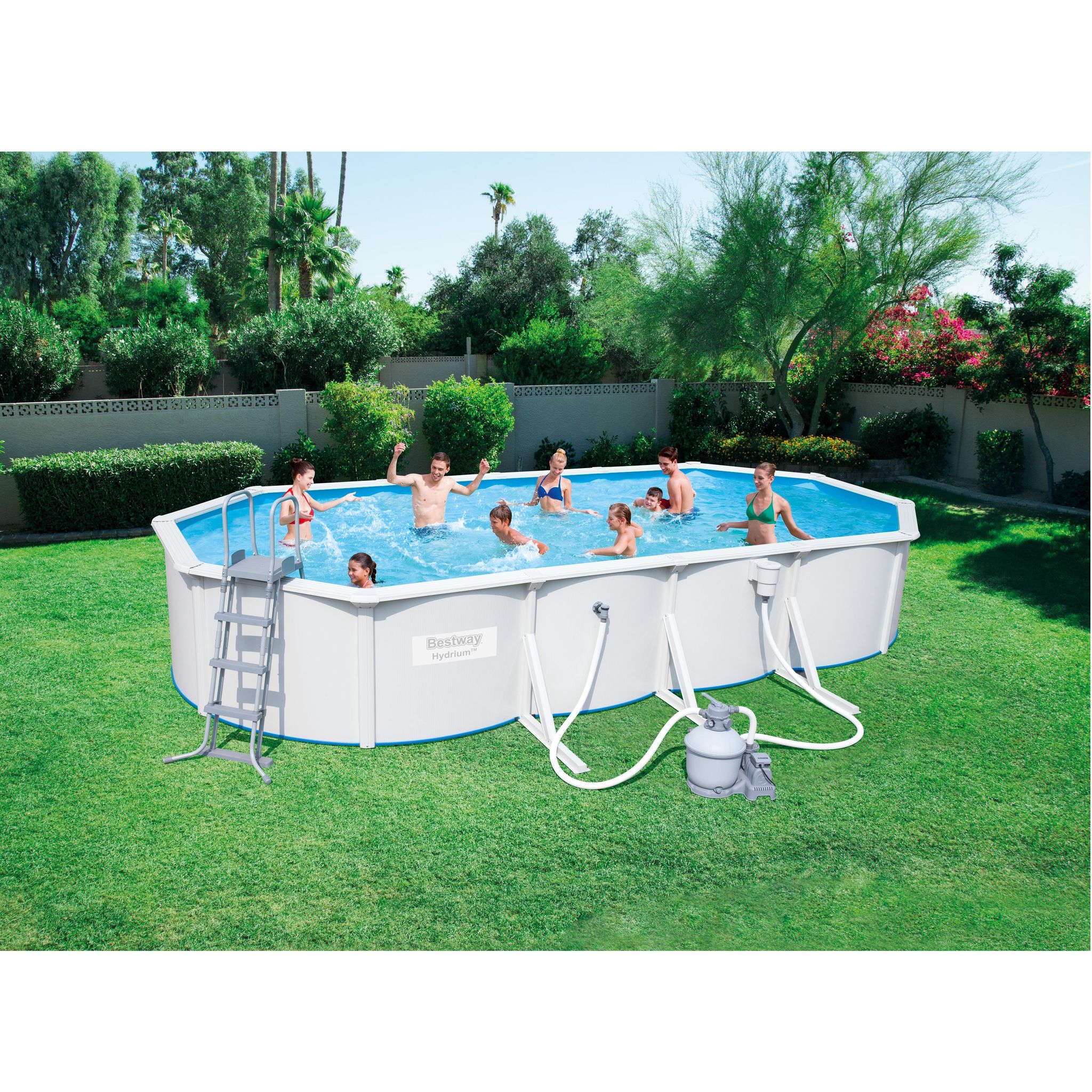Piscine tubulaire acier ovale 7,47 x 3,60 x H 1,20 m