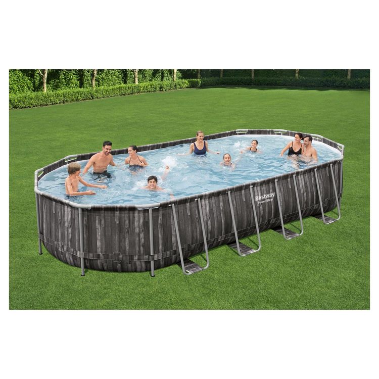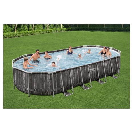 La piscine hors sol ovale Power Steel Motif extérieur bois rustique 732x366x122cm est un véritable objet de décoration pour votre jardin. Robuste et spacieuse elle ravira petits et grands. Bestway® Power Steel™ piscine hors sol 7,32 x 3,66 x 1,22 m