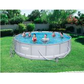 Kit Piscine Ronde Power Steel Frame Pools D 427cm h 107cm- Volume d'eau à 90% : 12 110 L + Filtre à cartouche 3,028 m3/h + Tapis de sol + Bâche 4 saisons + Echelle Sécurité + Une cartouche Type II