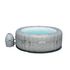 Ce spa gonflable mesure 1,96 m de diamètre pour une hauteur de 0,71m. Il peut contenir jusqu'à 916 litres. Son installation est très rapide : gonflage simple avec une pompe. Le kit spa contient deux cartouches de filtration type VI, un flotteur chimique ainsi qu'un DVD d'aide au montage.
