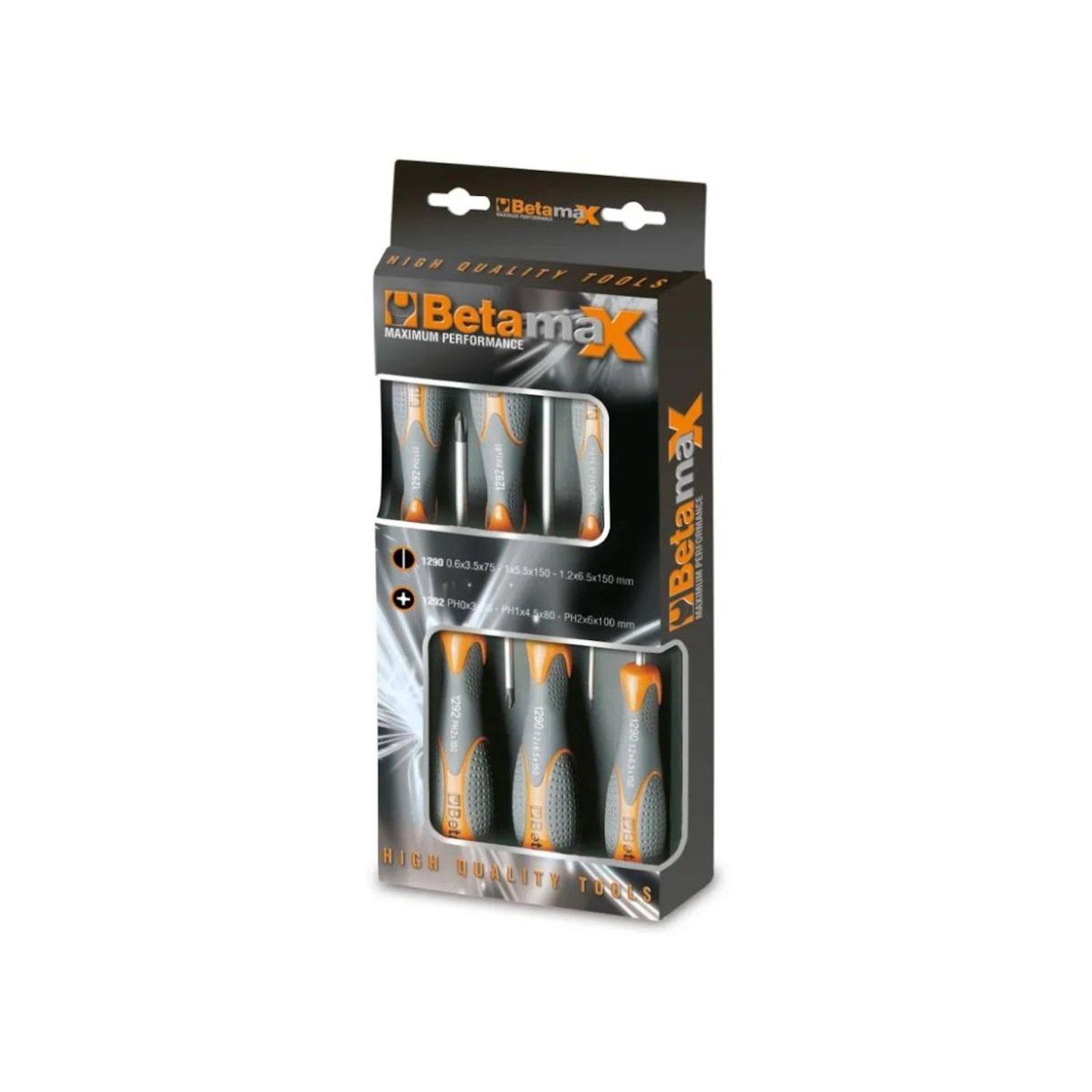 Beta 012930401 Jeu de 6 tournevis 12930401 de Beta. - Type de produit : Jeu de 6 tournevis.Plat : 0,6x3,5x75 / 1x5,5x150 / 1,2x6,5x150mm.PH0x60 / PH1x80 / PH2x100.Poids : 530g.
