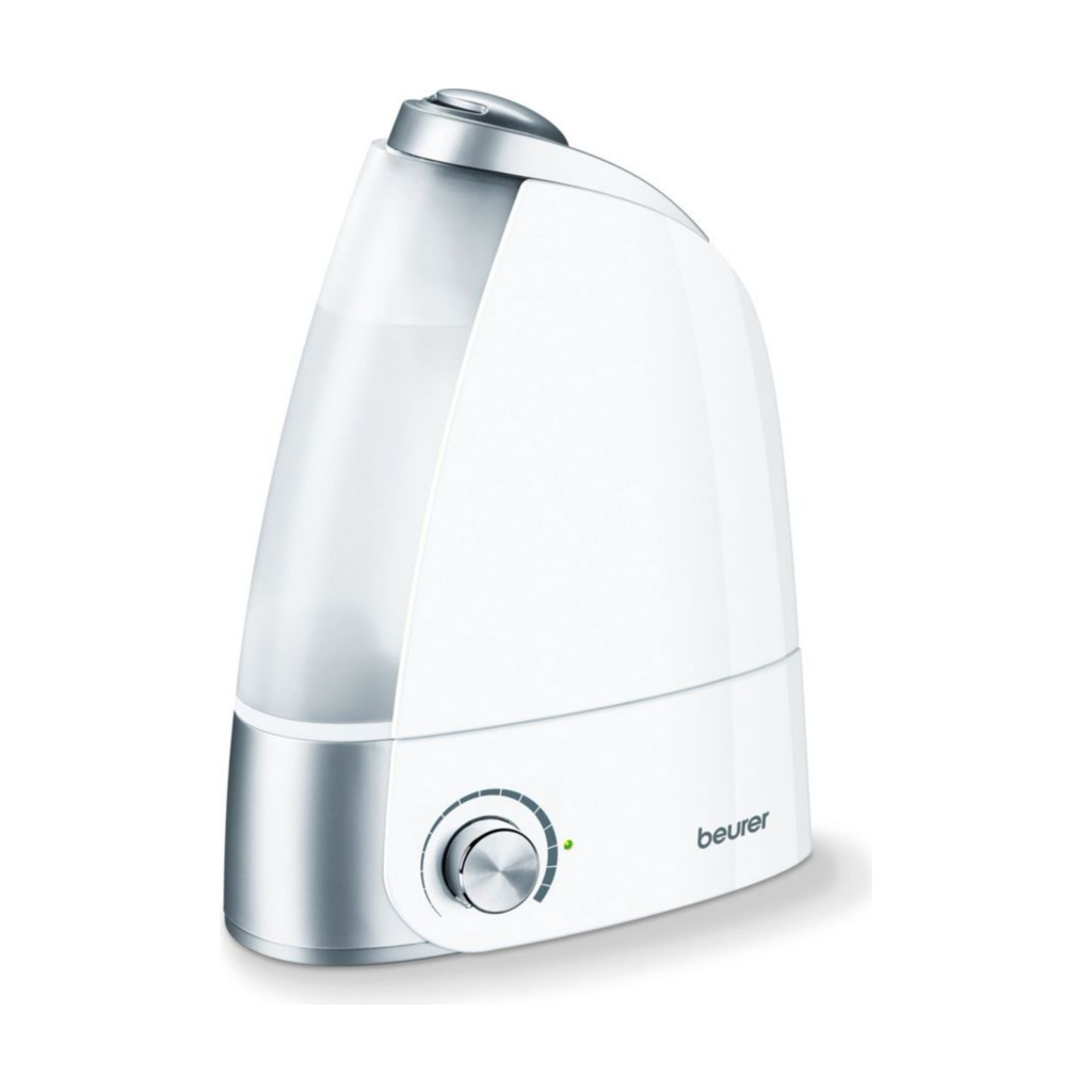 L'humidificateur d'air LB 44 de Beurer produit des vibrations à haute fréquence pour libérer de petites gouttes à la surface de l'eau.