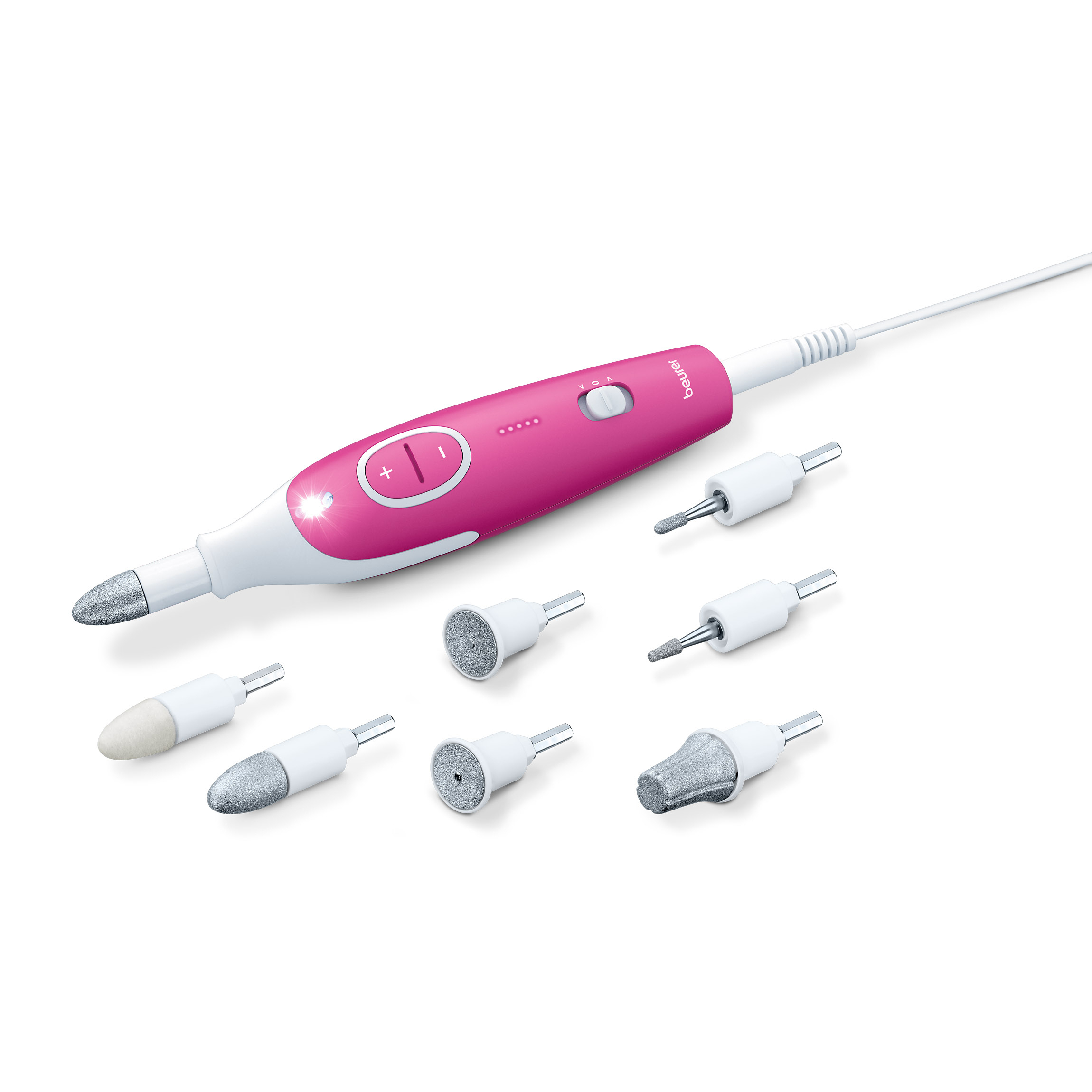 Affichage LED, 7 accessoires pour le soin, Rotation horaire et anti-horaire, Réglable en continu