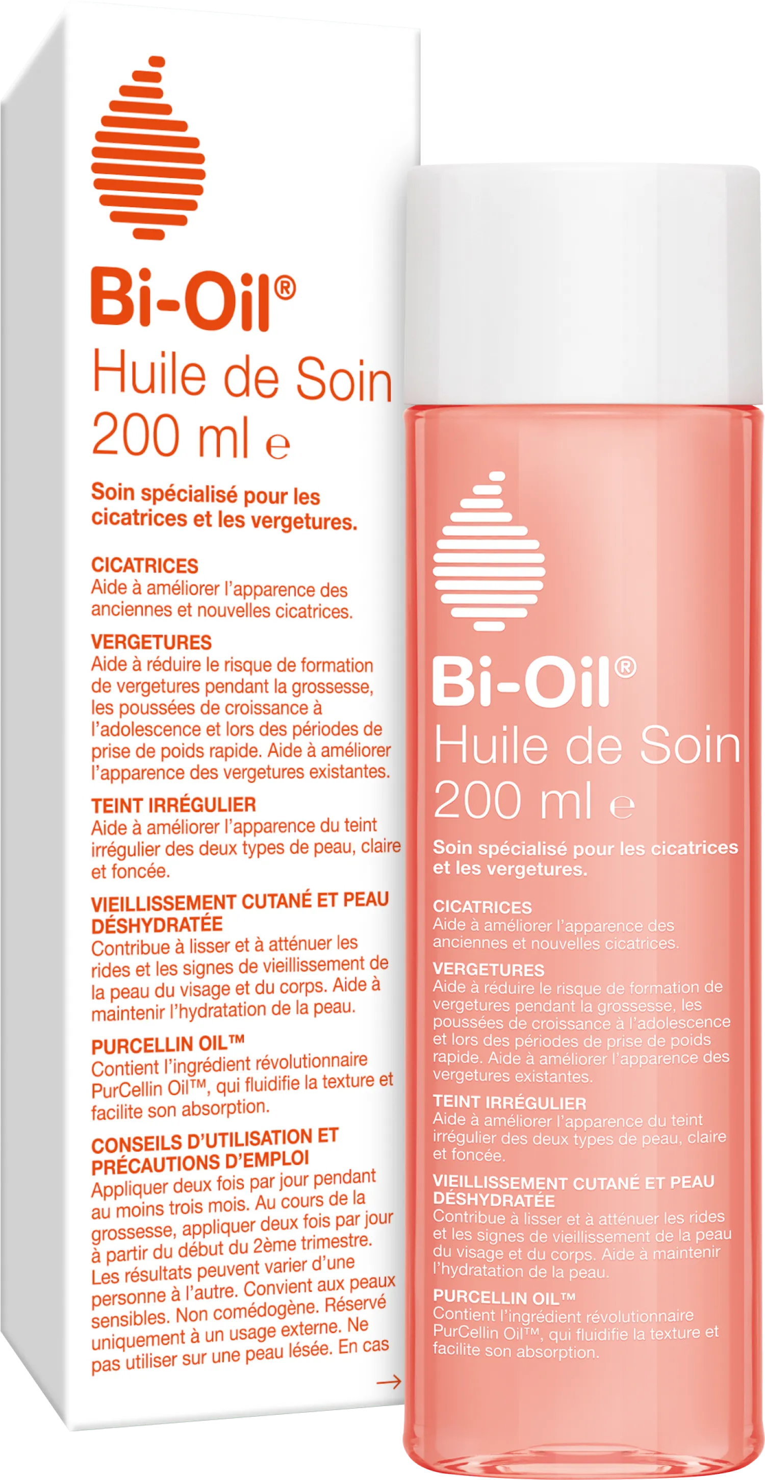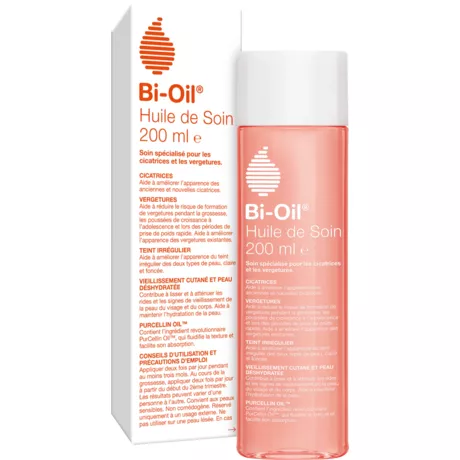 L'Huile de Soin Bi-Oil aide à améliorer l'apparence des vergetures et cicatrices nouvelles et anciennes