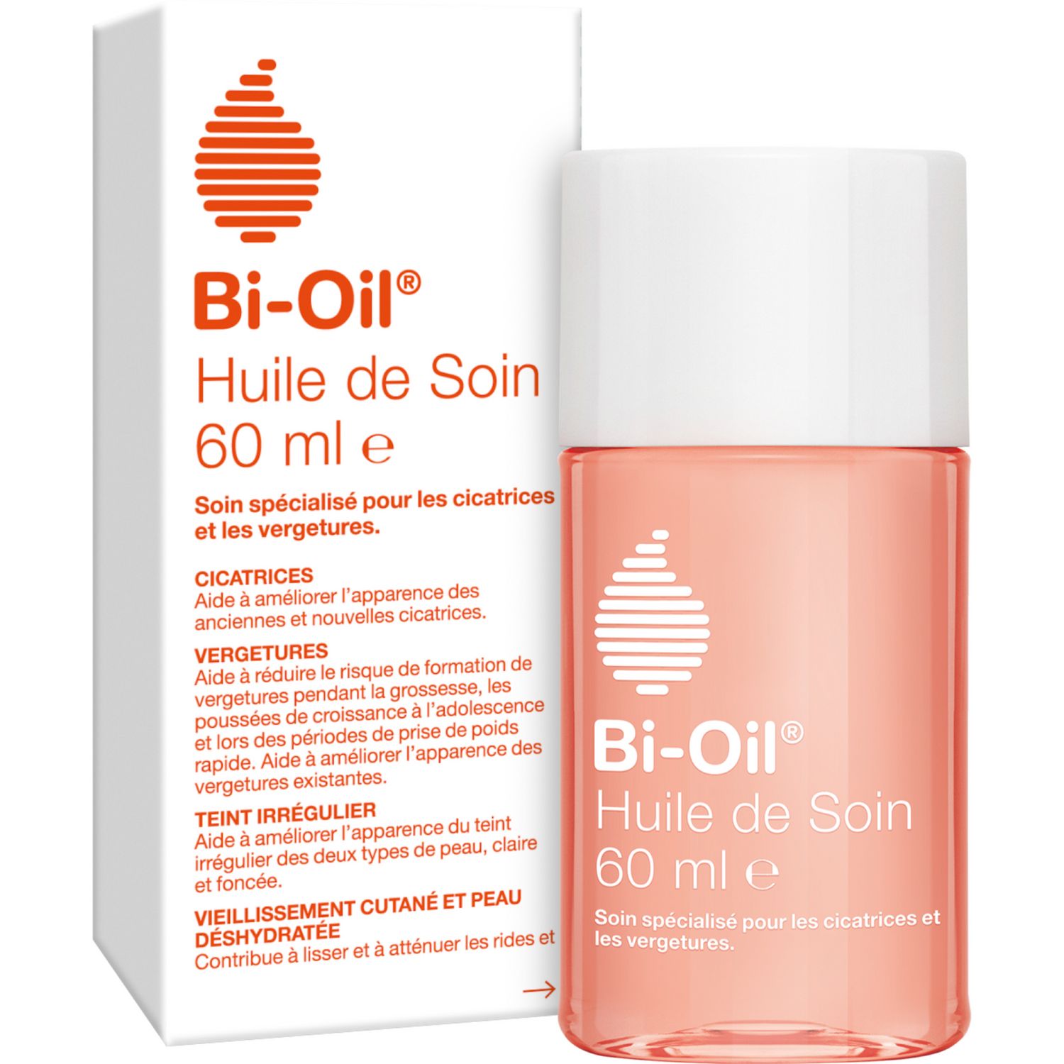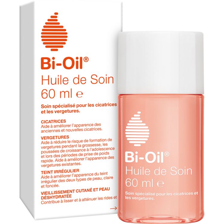 L'Huile de Soin Bi-Oil aide à améliorer l'apparence des vergetures et cicatrices nouvelles et anciennes