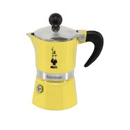 Découvrez la cafetière italienne Bialetti Rainbow, idéale pour les amateurs d'espresso. Fabriquée en aluminium de haute qualité, elle présente un design élégant avec une teinte jaune éclatante et des poignées en thermoplastique. Cette cafetière a une capacité de 60 ml, parfaite pour préparer un espr