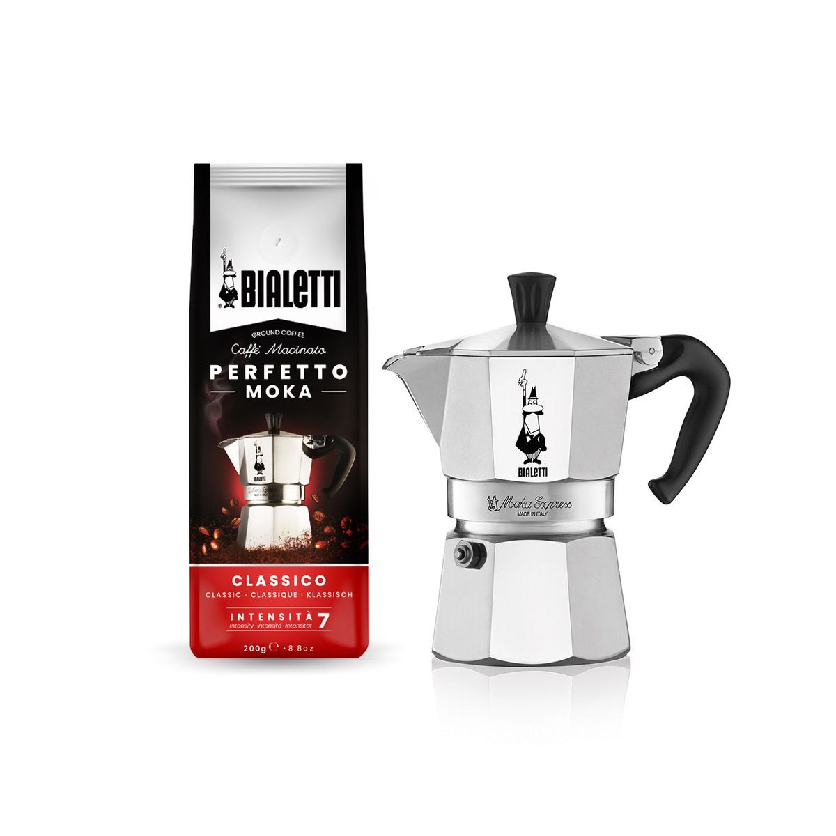 "BIALETTI Cafetière italienne MOKA3T 3535 Vous avez envie d'un café à l'ancienne? Bialetti vous propose cette cafetière italienne en aluminium d'une capacité de 3 tasses. Retrouvez le charme d'un bon café Italien! Bialetti vous offre un paquet de 200g pour l'achat de ce produit."