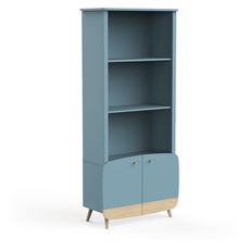 Bibliothèque bébé enfant 3 niches 2 portes bleu LINIA