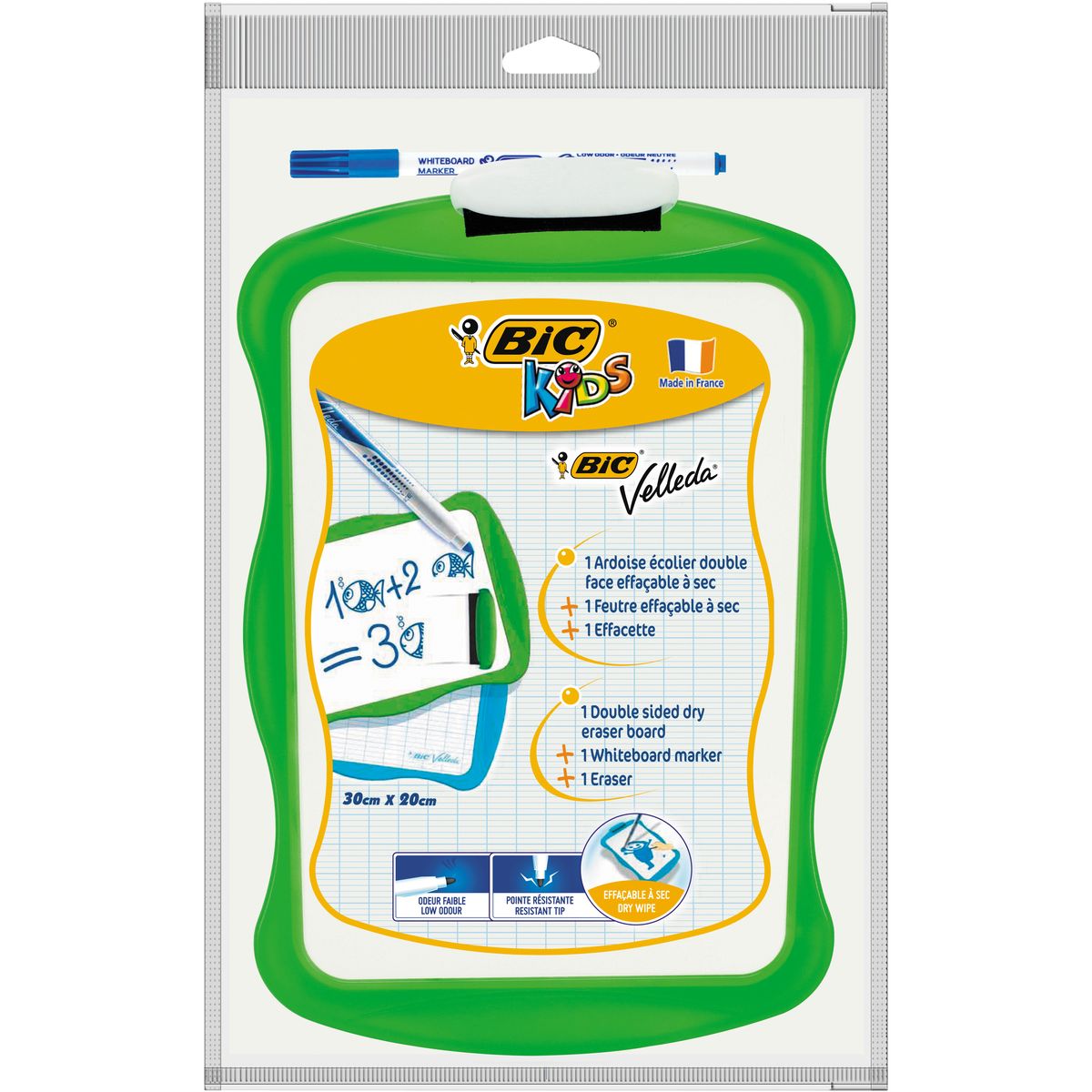 En savoir +Cette ardoise BIC Velleda double-face est parfaite pour apprendre à écrire : elle possède 1 face blanche et 1 face quadrillée. Un bon écolier est toujours bien équipé : l'ardoise est fournie avec 1 marqueur bleu BIC Velleda 1701 et 1 effacette qui se clipe a? l'ardoise. Bien pratique pour l'école, son petit format 21x31 cm se glisse dans tous les cartables.