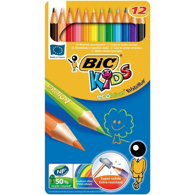Boîte en métal de 12 crayons de couleur Kids Evolution