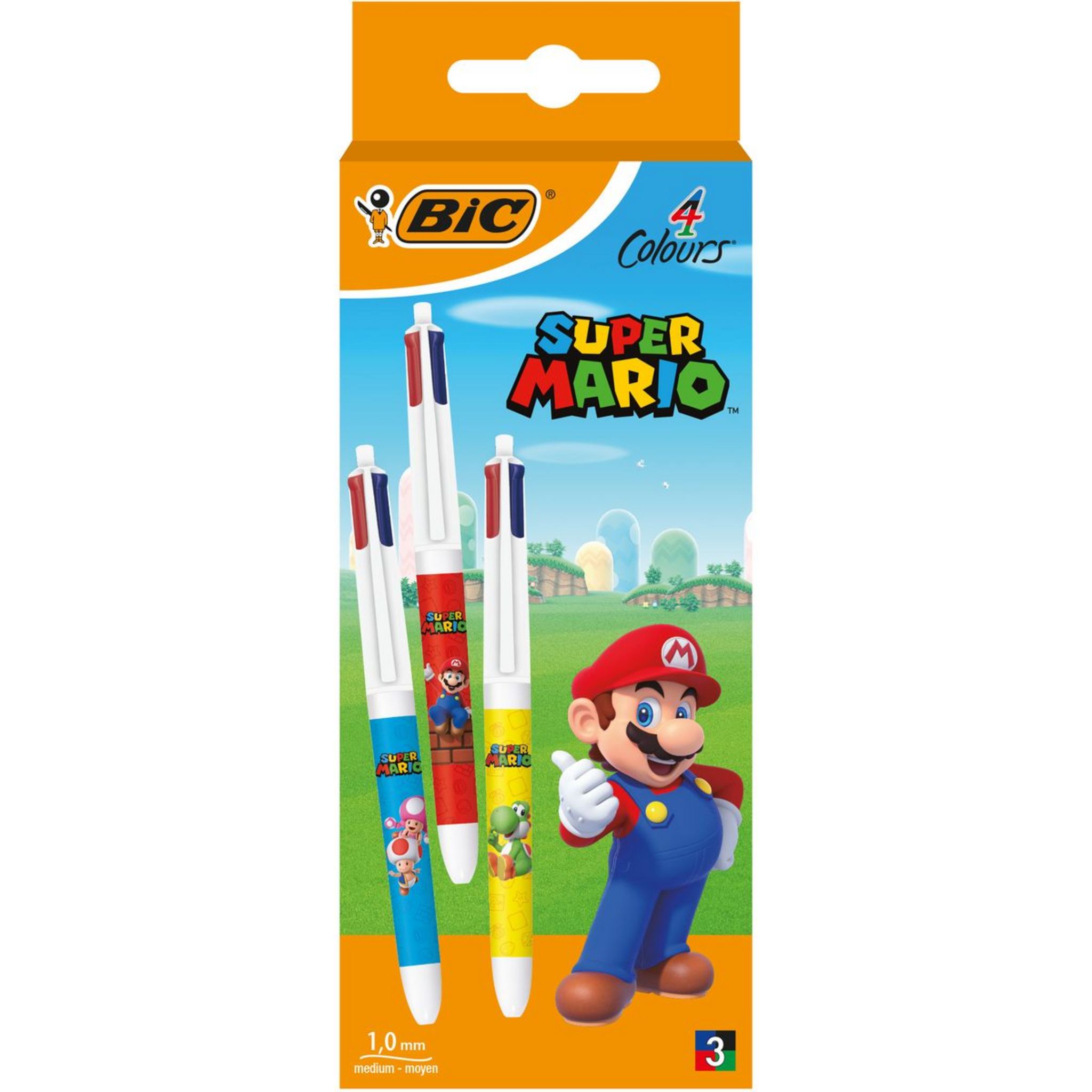 Lot de 3 stylos bille 4 couleurs rétractable pointe moyenne SUPER MARIO coloris assortis