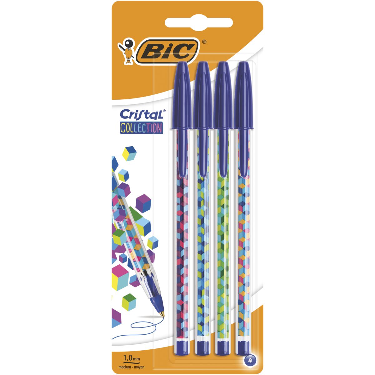 En savoir +Version collector du stylo BIC Cristal Original, stylo-bille emblématique le plus vendu au monde, ces 4 stylos BIC Cristal Collection se déclinent ici en encre bleue exclusivement. Légers, ces stylos aux motifs géométriques sont dotés d'une pointe moyenne de 1,0 mm qui convient à tout type d'usage et offrent une écriture nette et sans bavure. Reconnus pour leur endurance et leur résistance, ces stylos à bille écrivent très longtemps. Avec BIC, les produits sont faits pour durer.