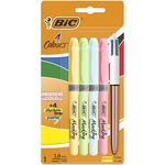 Lot de 4 surligneurs pastel + 1 stylo bille 4 couleurs rétractable rose gold