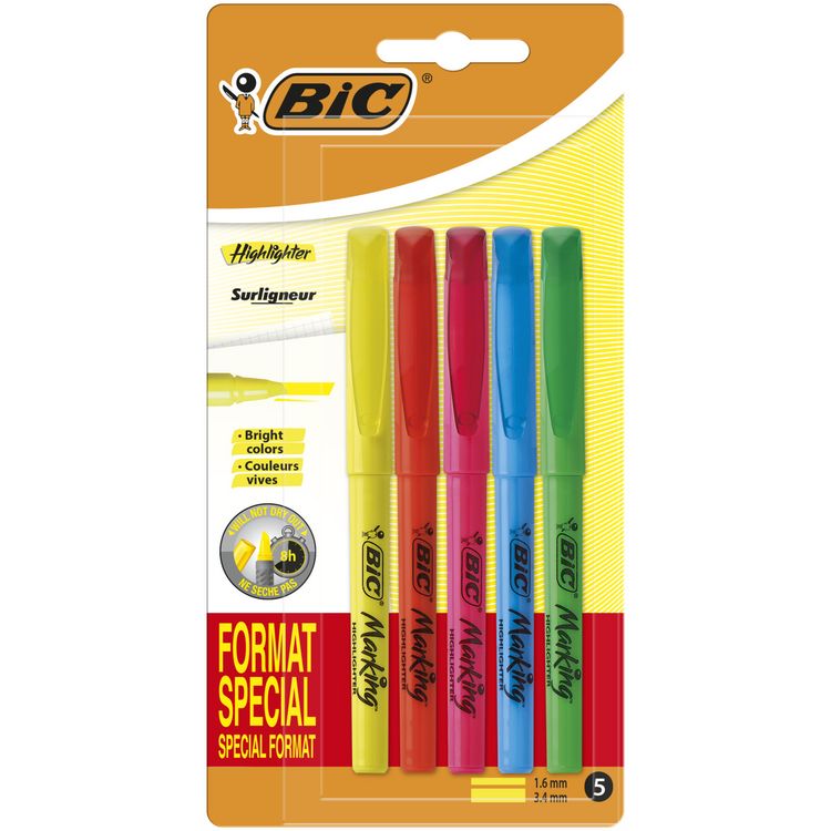 Lot de 5 surligneurs pointe biseautée Brite Liner coloris assortis