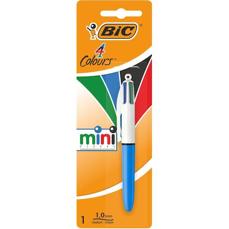 Avec cette version 4 Couleurs Mini de 12 cm, le stylo BIC 4 Couleurs rétrécit pour se glisser facilement dans vos poches, trousses et sacs. Ses pointes moyennes de 1,0 mm conviennent à tout type d’usage (prises de notes, schémas, annotations). Grâce à ses 4 couleurs (noir, bleu, rouge, vert), il est aussi idéal pour créer un "bullet journal" et une "to-do list".