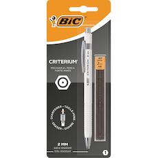 Le porte-mines rechargeable BIC Criterium est idéal pour le dessin technique, mais pas seulement : il est fourni avec une mine graphite HB de 2 mm très robuste (+étui de 6 mines de rechange). Pratique, son corps est doté de stries antidérapantes et il possède un clip en métal résistant pour l'accroc