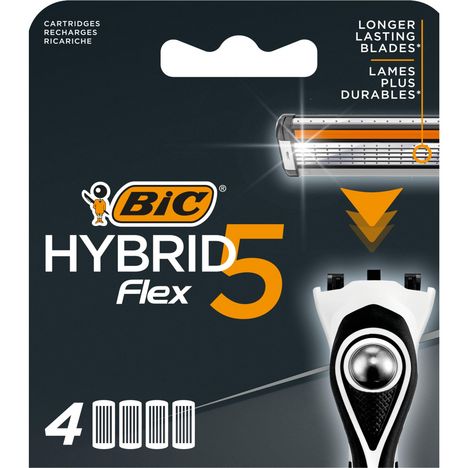 4 recharges 5 lames mobiles pour le rasoir homme BIC Hybrid 5 Flex pour un rasage ultra-précisLa lame de précision de ce rasoir manuel aide à atteindre le dessous du nez et du menton, les pattes et d’autres endroits délicatsLes 5 lames mobiles de ce