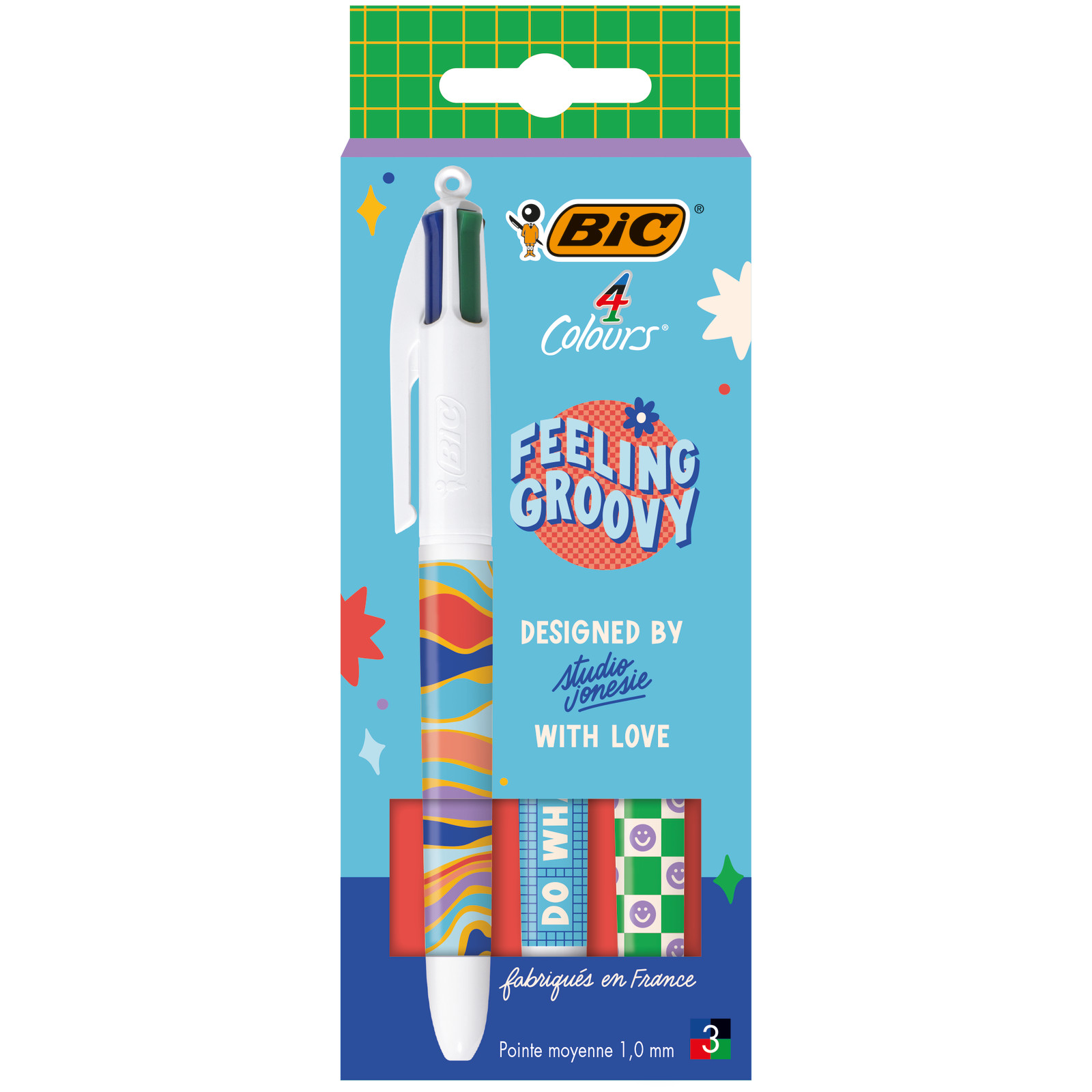 Stylo à bille 4 couleurs Édition Limitée « Feeling Groovy » by Studio Jonesie - Couleurs Assorties - Étui de 3