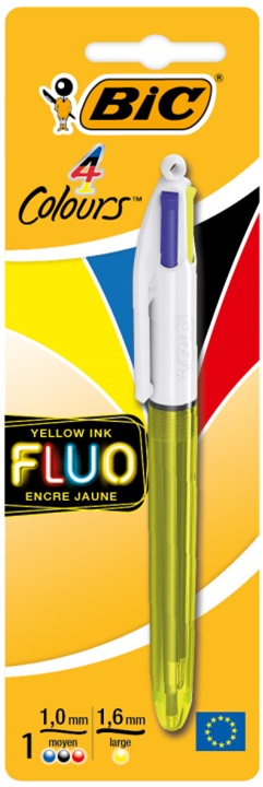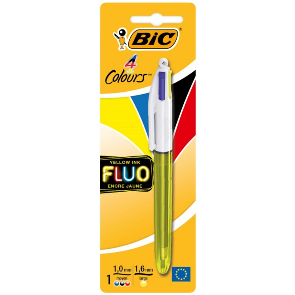 Stylo bille 4 couleurs fluo. Pointe moyenne