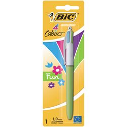 En savoir +Ce stylo-bille BIC 4 Couleurs Fun vous donnera (presque) envie de relire vos cours, avec son corps pastel bleu ciel ou lilas (sans choix possible). Quatre couleurs d'encre : rose, violet, turquoise ou vert citron, un cocktail vitaminé pour egayer vos notes et vos dessins au quotidien et pourquoi pas créer votre propre "bullet journal". Écrivez sans effort : l'encre fluide et les quatre billes minutieusement façonnées assurent une glisse parfaite.