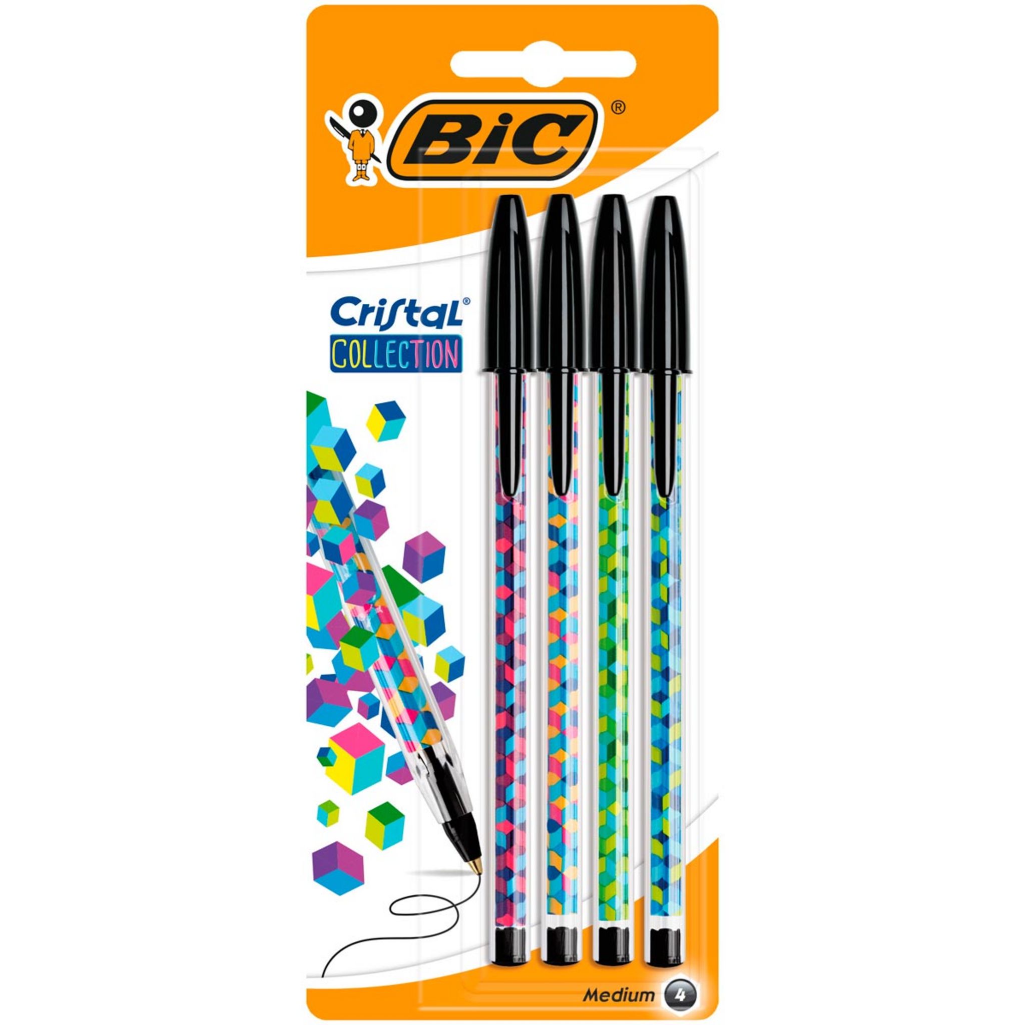 Stylos-bille pointe moyenne noir CRISTAL COLLECTION (lot de 4)