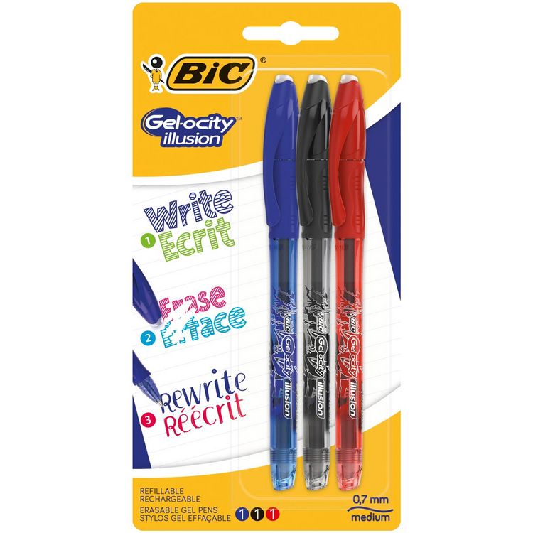 Stylos gel effaçables pointe moyenne bleu/noir/rouge GEL-OCITY ILLUSION (lot de 3)