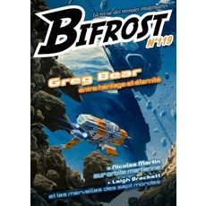 Il existe une loi dans la nature dont, à ma connaissance, personne n'a jamais fait mention à ce jour. Chaque heure qui passe voit naître et mourir une infinité de minuscules êtres vivants - bactéries, microbes, ? animalcules ? - dont l'existence n'a guère d'incidence si l'on excepte sa présence massive et l'accumulation de ses effets infimes. Ces êtres vivants minuscules sont dépourvus de toute perception élaborée et ils ne souffrent pas beaucoup. Cent billions d'entre eux pourraient mourir sans susciter ne serait-ce que le début des réactions occasionnées par la mort d'un seul être humain. Qu'ils soient petits comme des microbes ou grands comme des humains, les êtres vivants sont régis, quelle que soit leur échelle, par un subtil équilibre, de la même façon que les branches d'un grand arbre, réunies ensemble, égalent la masse de ses racines, et les racines celle du tronc. C'est du moins le principe. Je pense que Vergil Ulam fut le premier à le violer... Deux interviews de Greg Bear, une de son épouse Astrid (fille de Poul Anderson), un large article biographique signé Pascal J. Thomas, un guide de lecture complet et une bibliographie exhaustive (par Alain Sprauel) constituent la plus large introduction possible à l'oeuvre de l'un des maîtres de la hard SF contemporain. Des nouvelles signées Nicolas Martin et Leigh Brackett, et le corpus de nos rubriques habituelles, dont la célèbre Scientifiction , animée par l'astrophysicien Roland Lehoucq, complètent ce n°119.
