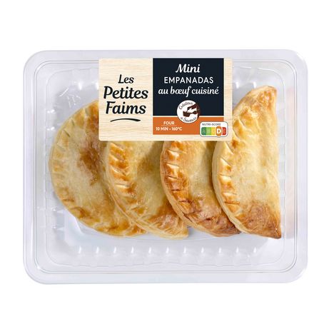 Ingrédients : farine de BLE, viande bovine cuite origine France 18%, BEURRE, eau, maïs 5%, oignons 5%, OEUF, dorure (OEUF, sucre, sel), purée de tomate, amidon modifié de manioc, sel, sucre, ail, assaisonnement 0,5% (poivron rouge déshydraté, paprika en poudre 0,1%, oignon déshydraté, coriandre moulue 0,02%, cumin poudre 0,02%, origan émincé déshydraté 0,02%, piment de Cayenne en poudre, persil déshydraté), huile de colza et/ou tournesol.