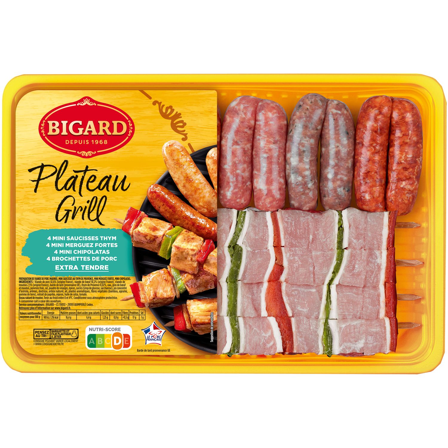 PREPARATION DE VIANDE DE PORC MARINEE, MINI SAUCISSES AU THYM DE PROVENCE, MINI MERGUEZ FORTES, MINI CHIPOLATAS