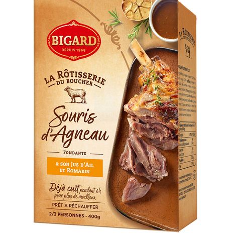 Souris d'agneau fondante cuite et son jus d'ail et romarin