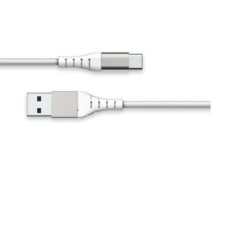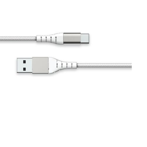 Câble de charge blanc ultra resistant, d'une longueur de 1.2 mêtres avec un revêtement en nylon renforcé