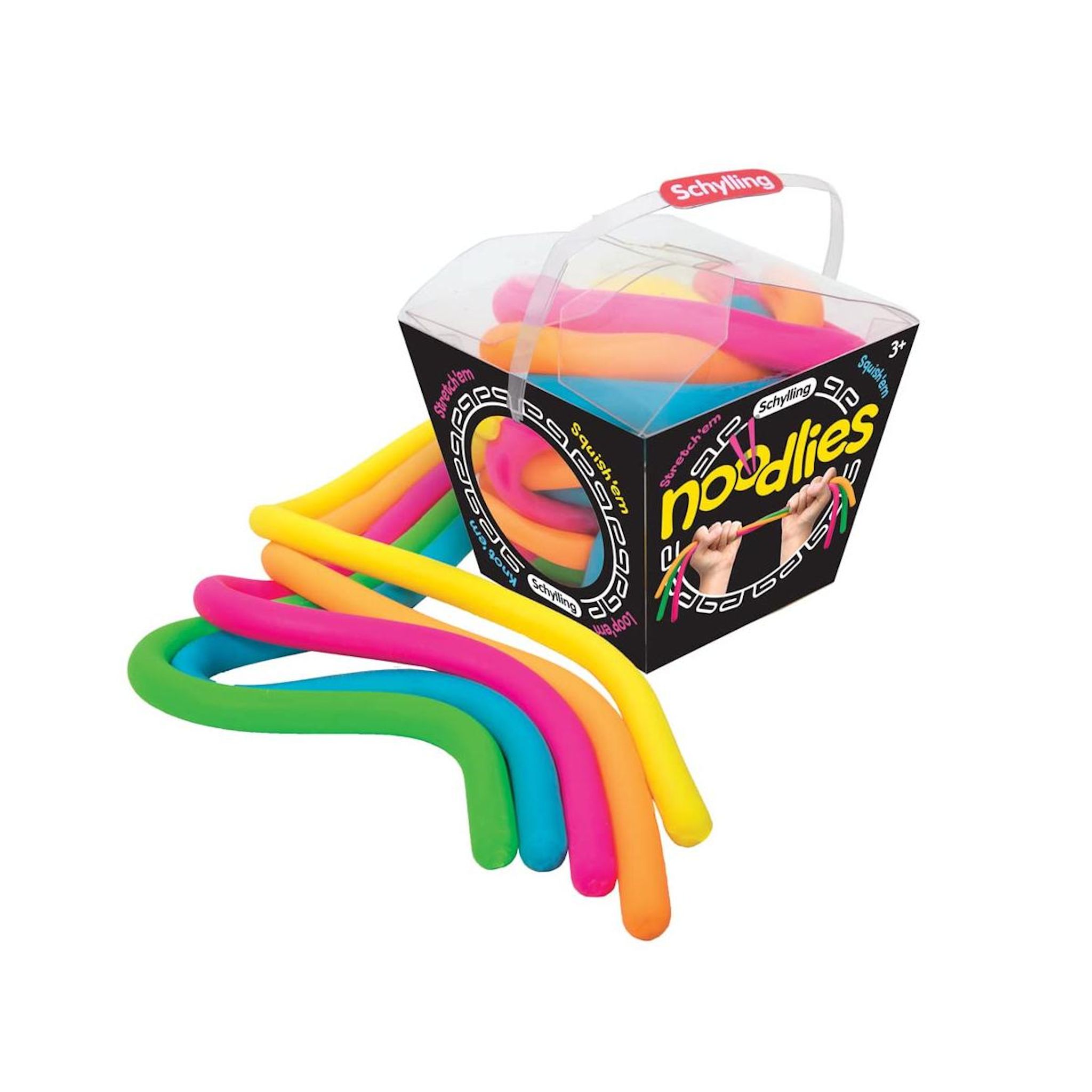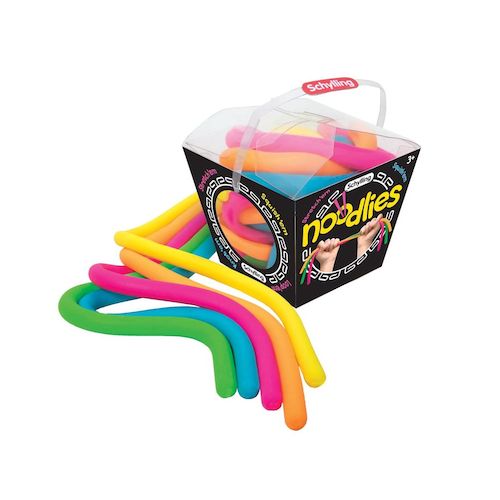 Les Noodlies de Schylling sont des jouets fidget colorés qui offrent le plaisir de jouer avec de la nourriture - sans le désordre ! Tirez, nouez, étirez, pressez et malaxez ces nouilles élastiques pour un max de plaisir nouilleux.
