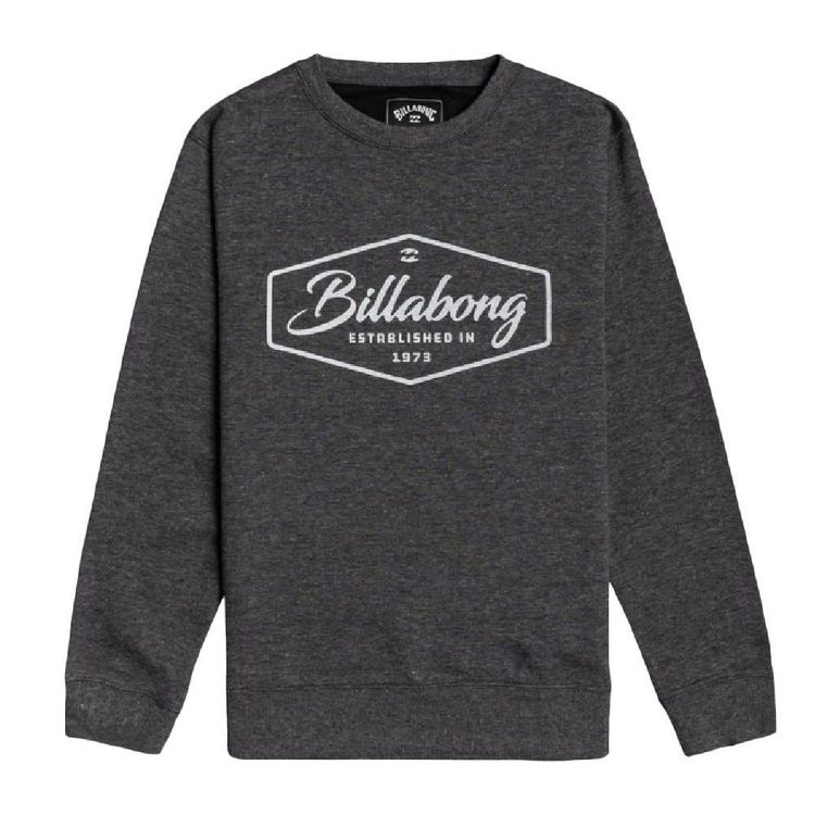 Sweat garçon de la marque Billabong modèle Wavy Manches longues Col rond Inscription sur l'avant Coloris : Gris/Noir Composition : 55% coton , 45% polyester