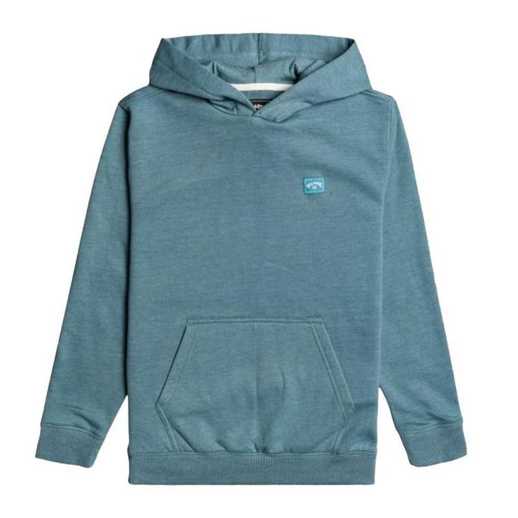 Optez pour le sweat garçon de la marque Billabong Manches longues Capuche 1 poche kangourou Coloris : Bleu/Turquoise Patch brodé sur la poitrine Composition : 55% coton recyclé , 45% polyester recyclé