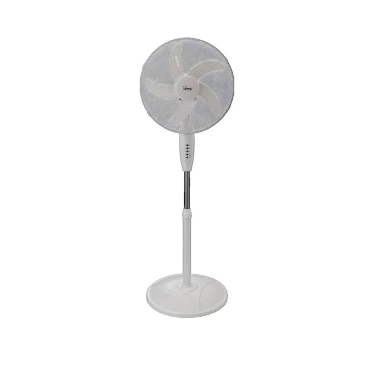 Le Bimar VP43T est un ventilateur de sol conçu pour une utilisation à domicile. Ce ventilateur offre trois vitesses de ventilation pour un confort personnalisé, une fonction oscillante automatique qui permet de diffuser l'air de manière homogène, et il est équipé d'une télécommande pour un fonctionnement pratique à distance. Son corps en plastique blanc assure une bonne durabilité et une grande praticité. Les dimensions du ventilateur sont de 415 mm de largeur, 400 mm de profondeur et 1230 mm de hauteur. Le ventilateur pèse 4,2 kg et dispose d'une hauteur ajustable selon les préférences de l'utilisateur, ce qui le rend adapté à différents besoins et environnements domestiques.