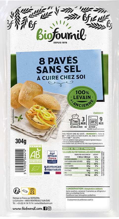 8 Pavés sans sel précuits bio sous atmosphère protectrice
