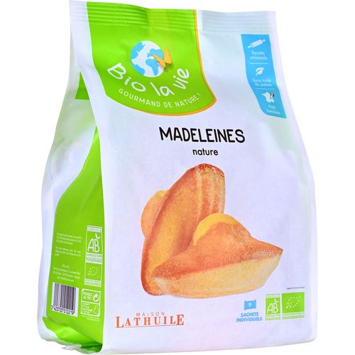 9 Madeleines nature emballées individuellement. Recette sans huile de palme.