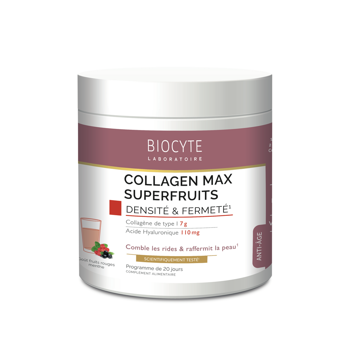 Collagen Max® Superfruits, au délicieux goût fruits rouges menthe, est une formule complète de collagène poudre qui contribue à réduire les signes de l’âge grâce au collagène. Sans dioxyde de titane.