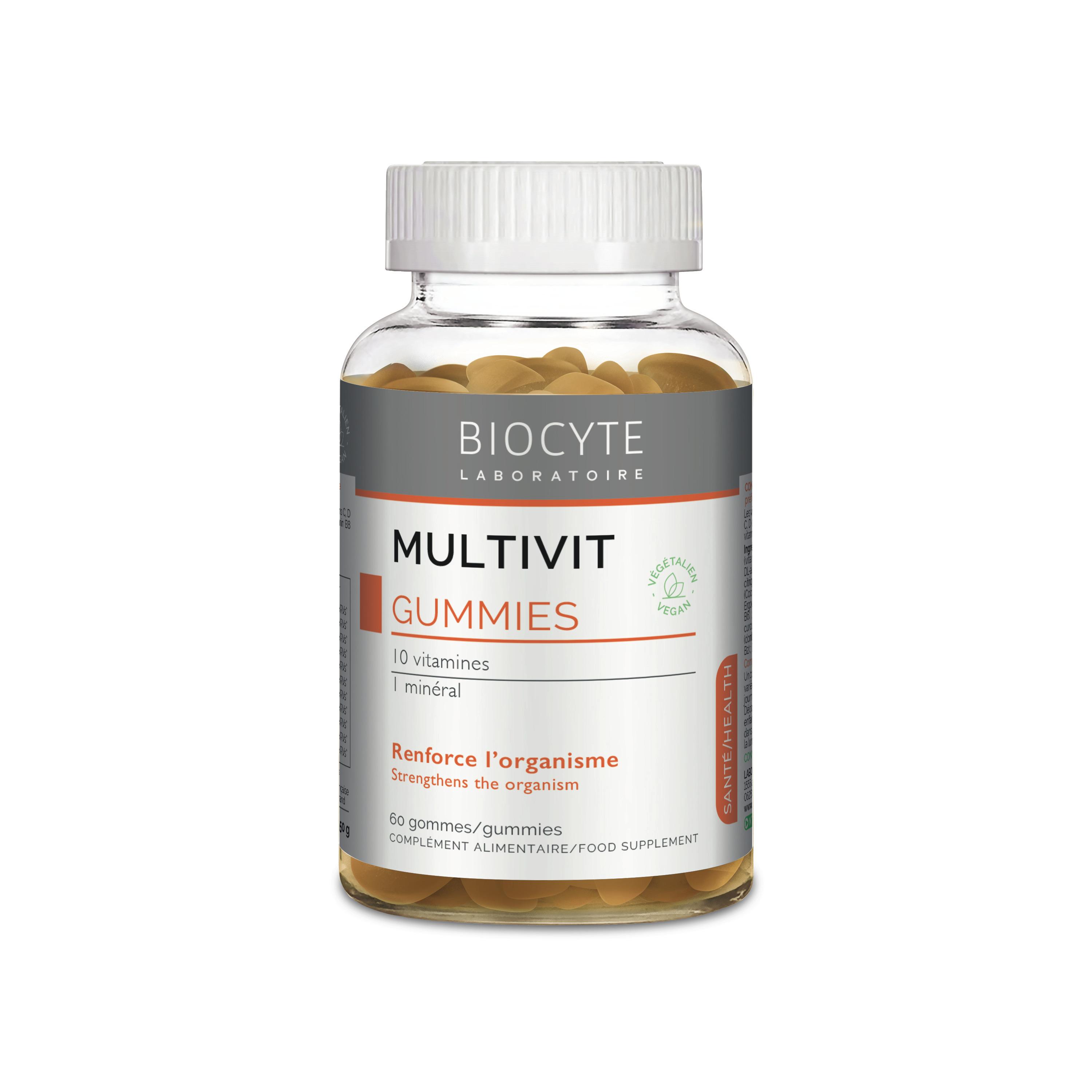 MULTIVIT GUMMIES est un complément alimentaire sous forme de gomme à mâcher pour renforcer l'organisme, réduire la fatigue et stimuler les défenses naturelles du corps. Formulé à base de vitamines et minéraux hautement dosés et 100% végétal. Nouveau Goût citron