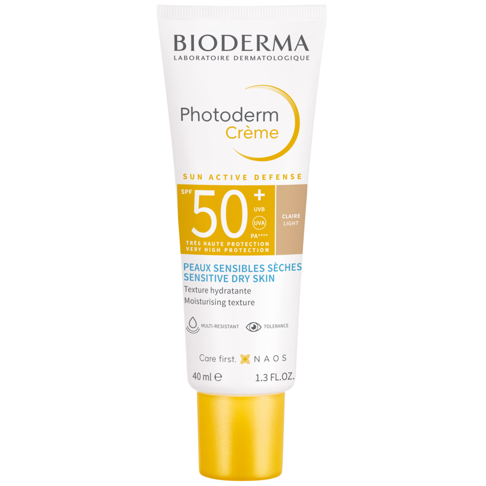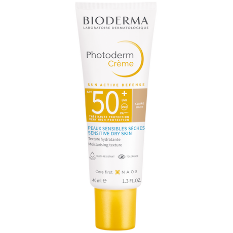 "Peaux sensibles sèches. Exposition solaire intense. Propriétés : texture confortable et hydratante. Formule teintée adaptée aux peaux claires. Teint hâlé et unifié. Sans effet gras au cours de la journée. Fini sec. Excellente base de maquillage. Très bonne tolérance cutanée et oculaire dans les conditions normales d’utilisation. Testé sous contrôle dermatologique et ophtalmologique. Photostable."
