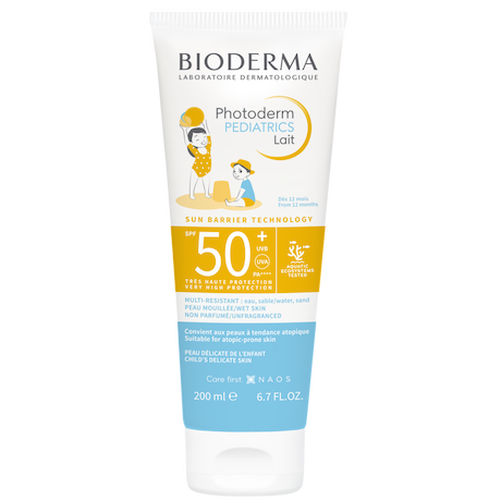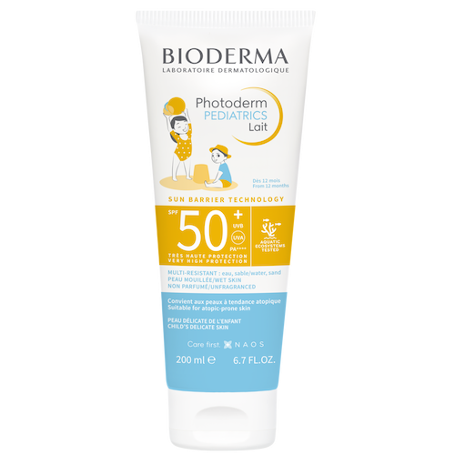 Double protection écobiologique, le Lait Solaire Pediatrics Photoderm protège la peau délicate des enfants exposés au soleil grâce à sa très haute protection large spectre UVA/UVB, associée à 4 filtres haute efficacité et à de la vitamine E.