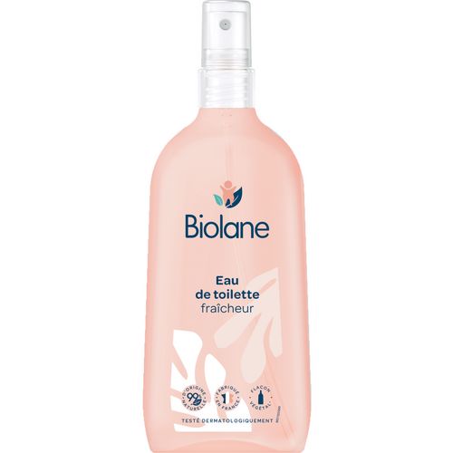 L'Eau de Toilette Fraîcheur BIOLANE a été formulée pour compléter agréablement la toilette et rafraîchir bébé à tout moment de la journée.