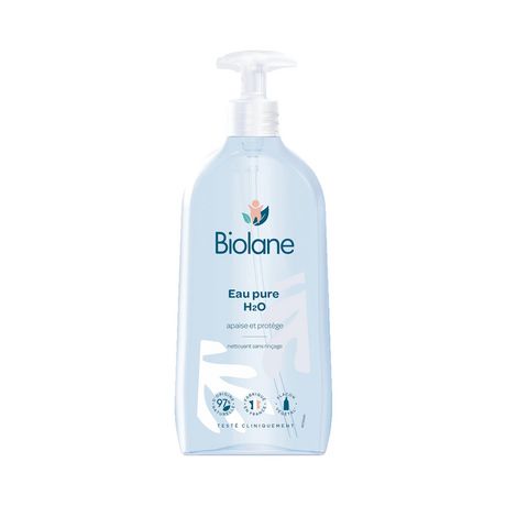 L'eau pure H2O Biolane nettoie parfaitement et en douceur le visage, le corps et le siège de votre bébé pour une peau propre et délicatement parfumée.
