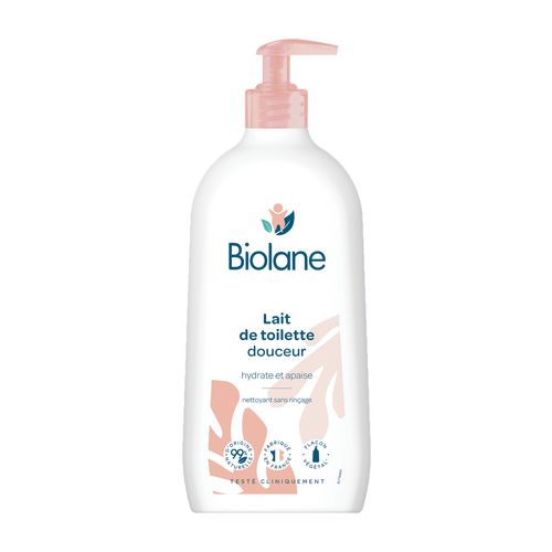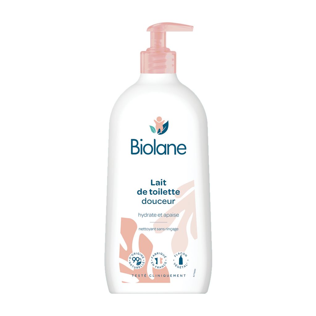 Le lait de toilette Biolane nettoie le visage, le corps et le siège de votre bébé pour que sa peau retrouve douceur et confort.