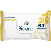 Les lingettes au liniment Biolane nourrissent et apaisent l'épiderme fessier, tout en laissant un film protecteur contre les agressions extérieures (urines, selles, frottement des couches).