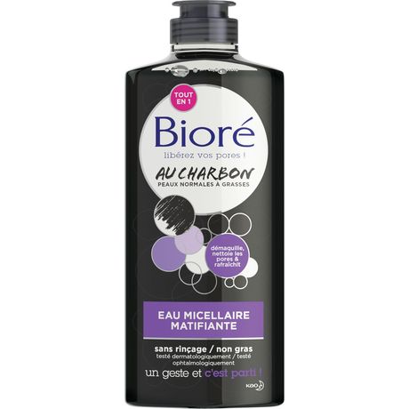 regardons les choses en face ! Nous savons tous qu'un visage bien propre est important pour aider à prévenir les boutons et imperfections, mais parfois…C'est . Tellement . De . Boulot ! comment ça marche ? Spécialement formulée pour les peaux normales à grasses, l'EAU MICELLAIRE AU CHARBON BIORÉ est une solution tout en 1 pour une peau propre et rafraîchie. N'importe quand et n'importe où. Pour démaquiller : Élimine le maquillage du visage, des yeux et des lèvres, même le plus tenace Pour nettoyer : Élimine les impuretés & l'excès de sébum des pores Pour se rafraîchir : Absorbe l'excès de sébum • NONCOMÉDOGÈNE (N'OBSTRUE PAS LES PORES) • HYPOALLERGÉNIQUE Eau micellaire matifiante