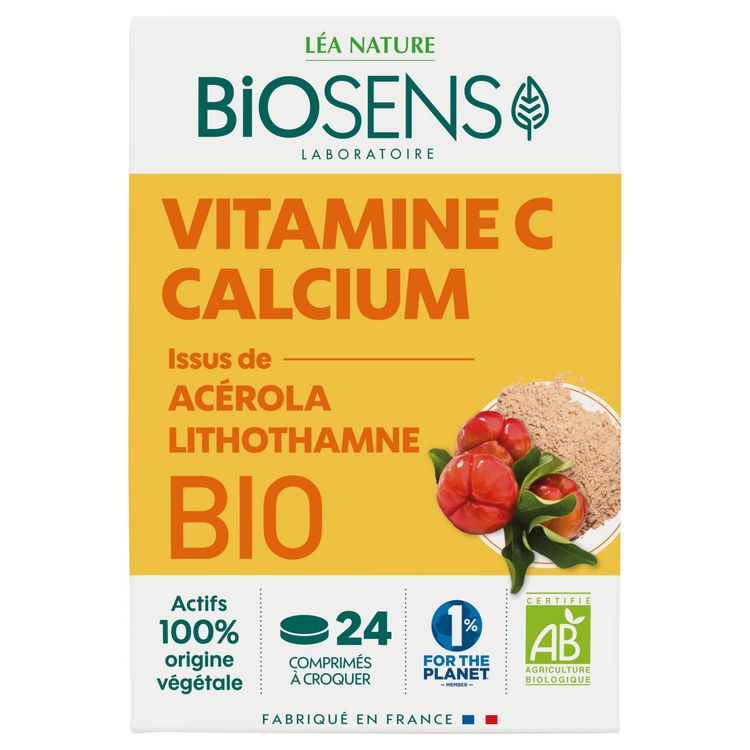 Comprimés vitamine C calcium issus de acérola lithothamne bio
