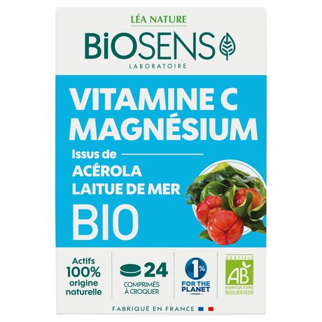 Comprimés vitamine C magnésium issus de acérola laitue de mer bio
